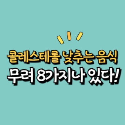 일상에서 먹는것만으로도 콜레스테롤을 낮출 수 있는 방법이기도 합니다. 아래에서는 콜레스테롤을 낮추는 음식 BEST8 를 소개해 드립니다.